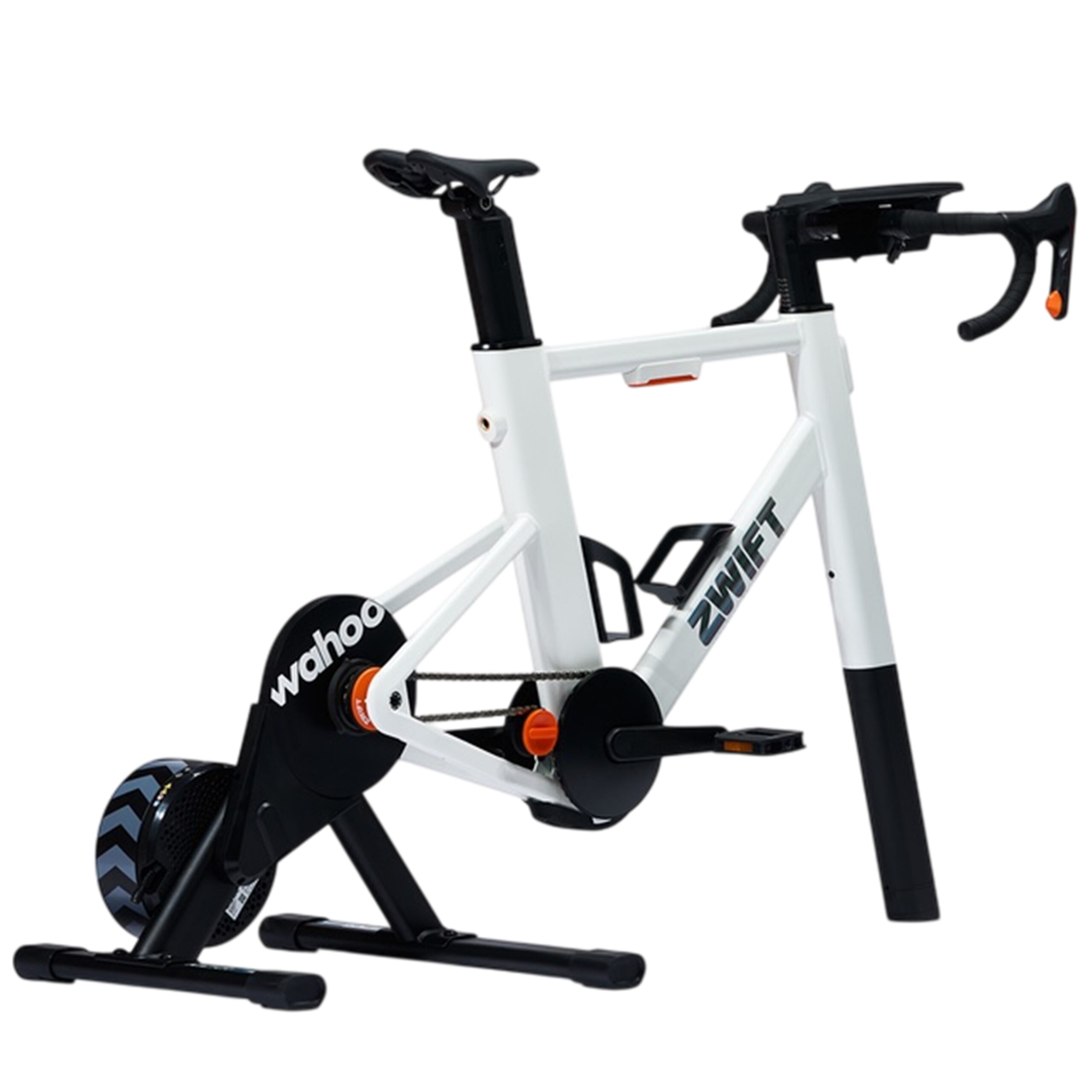 Zwift Ride offers a sleek, space-saving setup that’s impressively quiet. It’s smaller than a traditional bike and trainer, but still fits most riders.